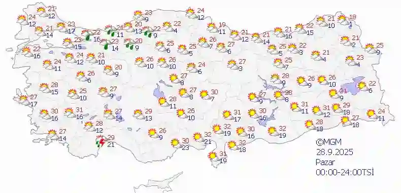 28 EYLÜL PAZAR HAVA NASIL OLACAK?
