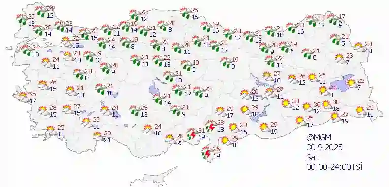 30 EYLÜL SALI HAVA NASIL OLACAK?