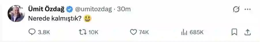 Yaptığı paylaşımda Özdağ “Nerede kalmıştık?” ifadelerini kullandı.