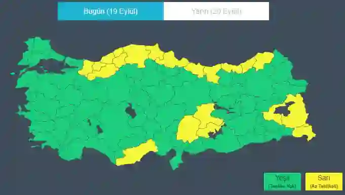 Meteoroloji tarafından, 21 il için sarı kodlu uyarı yapıldı.