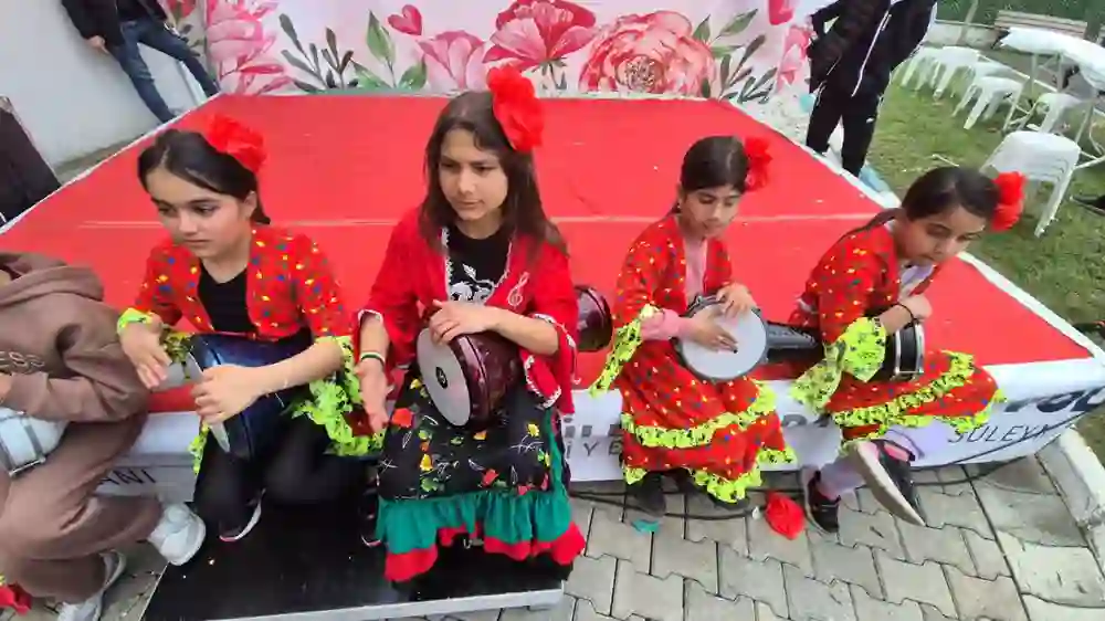 Çocuklardan oluşan Roman ritim grubunun davul ve darbukalarla sahne aldığı etkinlikte, vatandaşlar coşkulu anlar yaşadı.