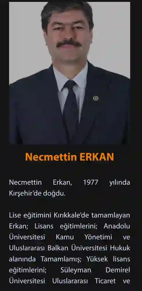 AKP Kırşehir milletvekili Necmettin Erkan’ın, eski biyografisinde, lisans eğitimini Anadolu Üniversitesi Kamu Yönetimi ile Uluslararası Balkan Üniversitesi Hukuk alanında tamamladığı görülüyor. Erkan’ın, güncellenen biyografisinden “Balkan Üniversitesi” ifadesi çıkarıldı. Yeni metinde Erkan’ın yalnızca Eskişehir Anadolu Üniversitesi Kamu Yönetimi bölümünden mezun olduğu bilgisi yer aldı.