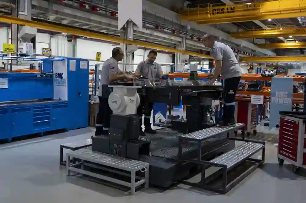 BMC Savunma ve tankın yerli güç grubu BATU’nun geliştirilip üretileceği BMC Power’a ev sahipliği yapan tesisiste, yerli olarak üretilen endüstriyel robotları kullanılırken, yeni nesil üretim teknolojilerinden yararlanılıyor.