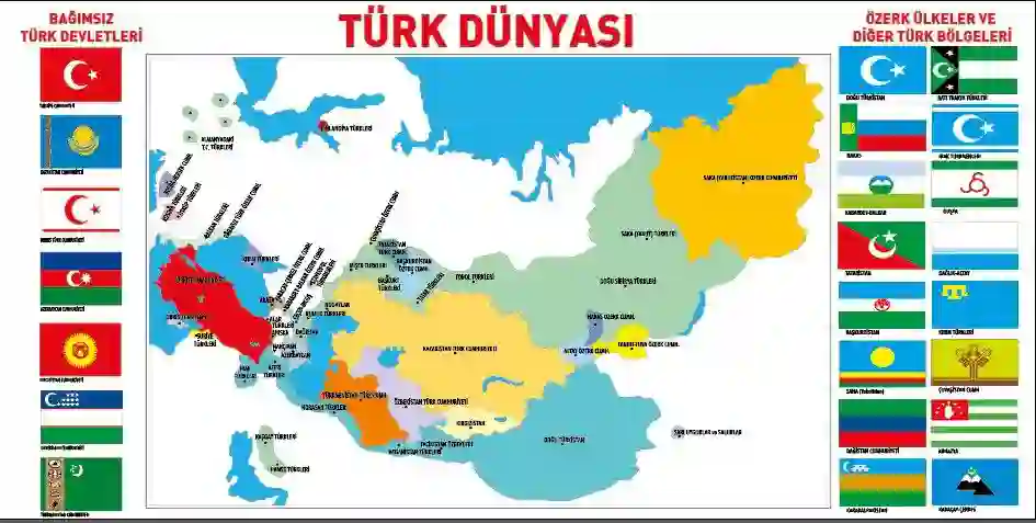 Bugün Türkiye, Azerbaycan, Kazakistan, Türkmenistan, Özbekistan, Kırgızistan, Kuzey Kıbrıs Türk Cumhuriyeti birer bağımsız Türk devletidir. Bu devletlere ilaveten özerk Türk Cumhuriyetleri vardır. Altay Cumhuriyeti, Başkurtistan, Kabardey-Balkarya Cumhuriyeti, Çuvaşiştan Cumhuriyeti, Dağıstan Cumhuriyeti, Doğu Türkistan, Gagavuzya, Hakasya, Karaçay-Çerkes Cumhuriyeti, Karakalpakistan, Nahçıvan, Tataristan, Tuva Cumhuriyeti ve Yakutistan özerk Türk devletleridir. Bütün bunlara ilaveten İran’da Azeriler, Kaşkaylar, Kaçarlar, Rusya’da Nogaylar, Ahıska Türkleri, Terekemeler ve Karay Türkleri, Yunanistan, Bulgaristan ve eski Yugoslav devletlerinde Balkan Türkleri, Irak’ta Türkmenler, Suriye’de Oğuz Türkmenleri, Çin’de Yugurlar, Salarlar ile dünyanın diğer coğrafyalarında Halaçlar, Şahsevenler, Naymanlar ve Avrupa Türkleri gibi ve Amerikalı tarihçi Gene D. Matlock’un işaret ettiği burada isimlerini saymaya imkân bulamadığımız daha birçok Türk kökenli topluluklar bulunmaktadır.