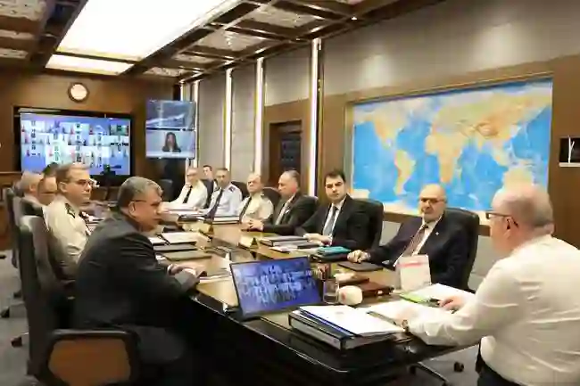 Millî Savunma Bakanı Yaşar Güler, yurt içindeki ve sınır ötesindeki birlik komutanlarının katılımıyla video konferans toplantısı gerçekleştirdi. Toplantıda, Genelkurmay Başkanı Orgeneral Metin Gürak, Deniz Kuvvetleri Komutanı Oramiral Ercüment Tatlıoğlu, Kara Kuvvetleri Komutanı Orgeneral Selçuk Bayraktaroğlu, Hava Kuvvetleri Komutanı Orgeneral Ziya Cemal Kadıoğlu ve bakan yardımcıları Alpaslan Kavaklıoğlu, Bilal Durdalı ve Musa Heybet yer aldı. Bakan Güler, bölgede ve dünyada çok boyutlu tehditlerin, çatışmaların ve belirsizliklerin yoğunlaştığı bir süreçten geçtiklerini belirterek, “Bu gelişmeler, bizleri sadece yakın çevremizde değil; küresel düzlemde de daha dikkatli, daha hazırlıklı ve daha dirayetli olmaya mecbur bırakmaktadır. Ülkemizin güvenliği ve bekası, yalnızca sınırlarımızı korumaktan ibaret değildir. Kara, deniz, hava, uzay ve siber alanda etkin, caydırıcı ve hazır bir Türk Silahlı Kuvvetleri (TSK), aynı zamanda barış ve istikrarın teminatıdır. Türk Silahlı Kuvvetleri, bugüne kadar olduğu gibi bugün de görevini büyük bir azim, inanç ve kararlılıkla sürdürmekte, her birinizin bu sorumluluk bilinciyle yürüttüğü görevler hem sahada hem de masada ülkemizin elini güçlendirmektedir” ifadelerini kullandı.
