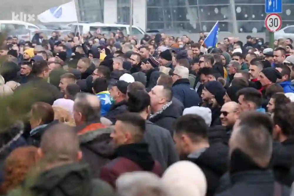 Bosna-Hersek’in başkenti Saraybosna’da yüzlerce iş insanı hükümet binası önünde toplanarak asgari ücretin 1.000 KM’ye çıkarılması kararını protesto etti.