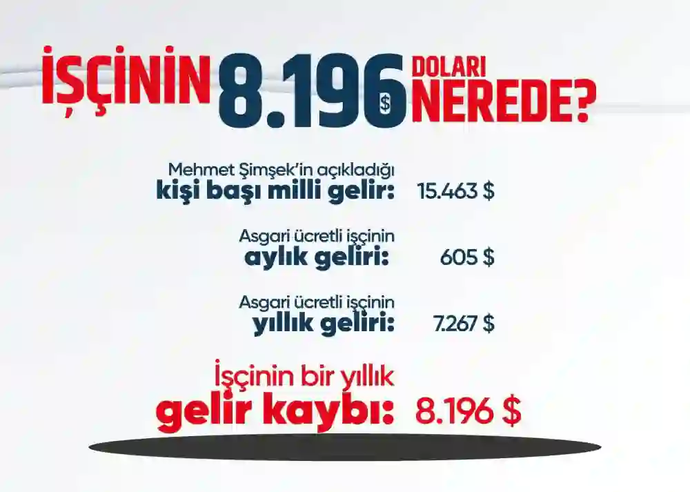 Gelir farkı sorusu: Karabat, “İşçinin 8 bin 196 doları, emeklinin 10 bin 707 doları nerede?” diyerek, Hazine ve Maliye Bakanı’na çağrıda bulunurken ve asgari ücretli ile emeklilerin millî gelir içindeki payının kaybolduğunu iddia etti.