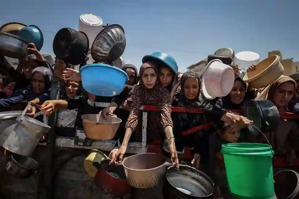 AA fotomuhabiri Ali Jadallah tarafından 22 Temmuz 2025’te çekilen, “Gazze’de açlıkla mücadele eden Filistinlilere, yemek dağıtıldı” başlıklı fotoğraf.Cumhurbaşkanı Erdoğan, “Lütfen hepimiz, elimizi vicdanımıza koyup cevap verelim. 2025 yılında şöyle bir gaddarlığın makul bir sebebi olabilir mi? Fakat, Gazze’de insanlık için bu utanç manzarası, 23 aydır her gün tekerrür ediyor.” dedi.