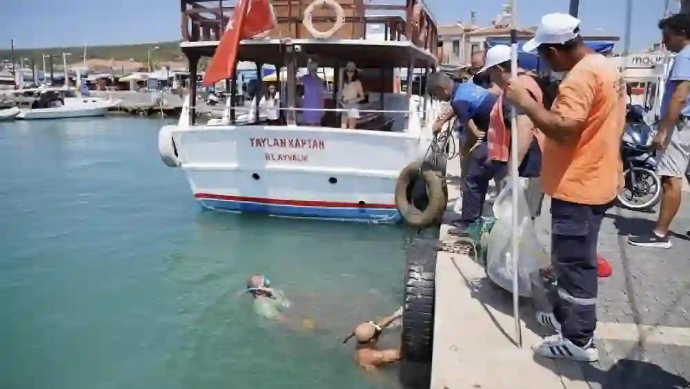 Ayvalık Belediyesi öncülüğünde düzenlenen çevre temizliği etkinliğinde, deniz dibi ve yüzeyinden çıkarılan atıklar, Cunda sahilinde sergilendi. Belediye Başkanı Mesut Ergin, “Burada sergilenen manzara, doğaya verilen zararın göstergesi. Tüm vatandaşları çevreye karşı daha duyarlı olmaya ve sürdürülebilir bir gelecek için benzer çalışmalara destek vermeye bekliyoruz. Unutmayalım, denizlere attığımız her şey, bir gün bize geri döner ” dedi.