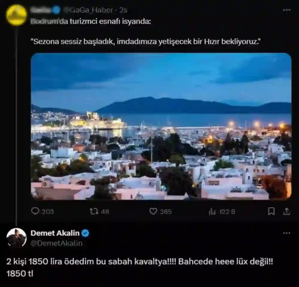 Akalın “İki kişi sabah kahvaltısı için 1850 lira ödedim! Hem de bahçede, lüks bir yer de değildi” ifadelerini kullandı.