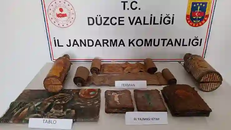 Düzce’de, Roma ve Bizans dönemlerine ait olduğu değerlendirilen 3 tarihi el yazması kitap, 2 sandıklı şerit halinde Tevrat ve tablo ele geçirilen operasyonda, 4 şüpheli gözaltına alındı.