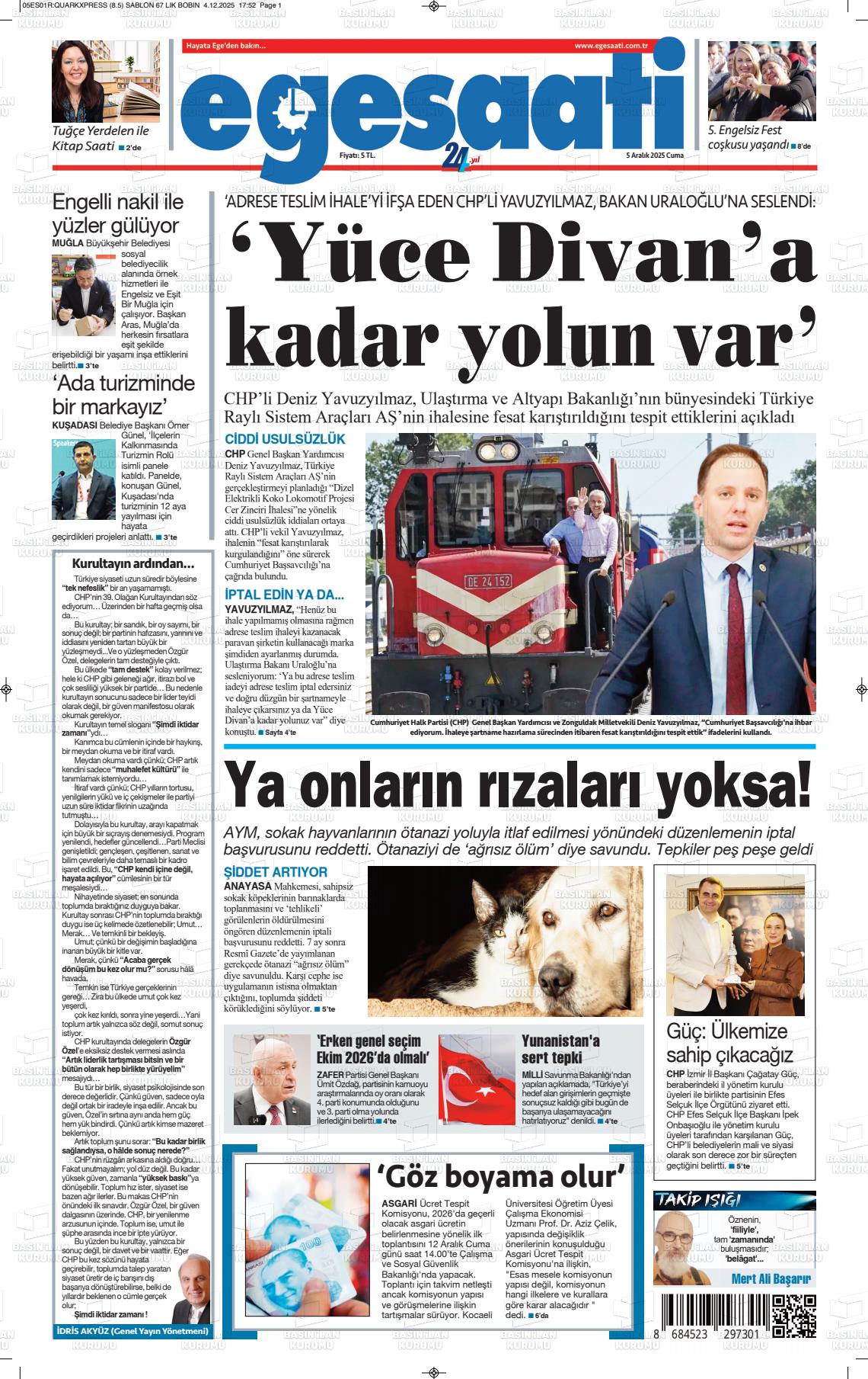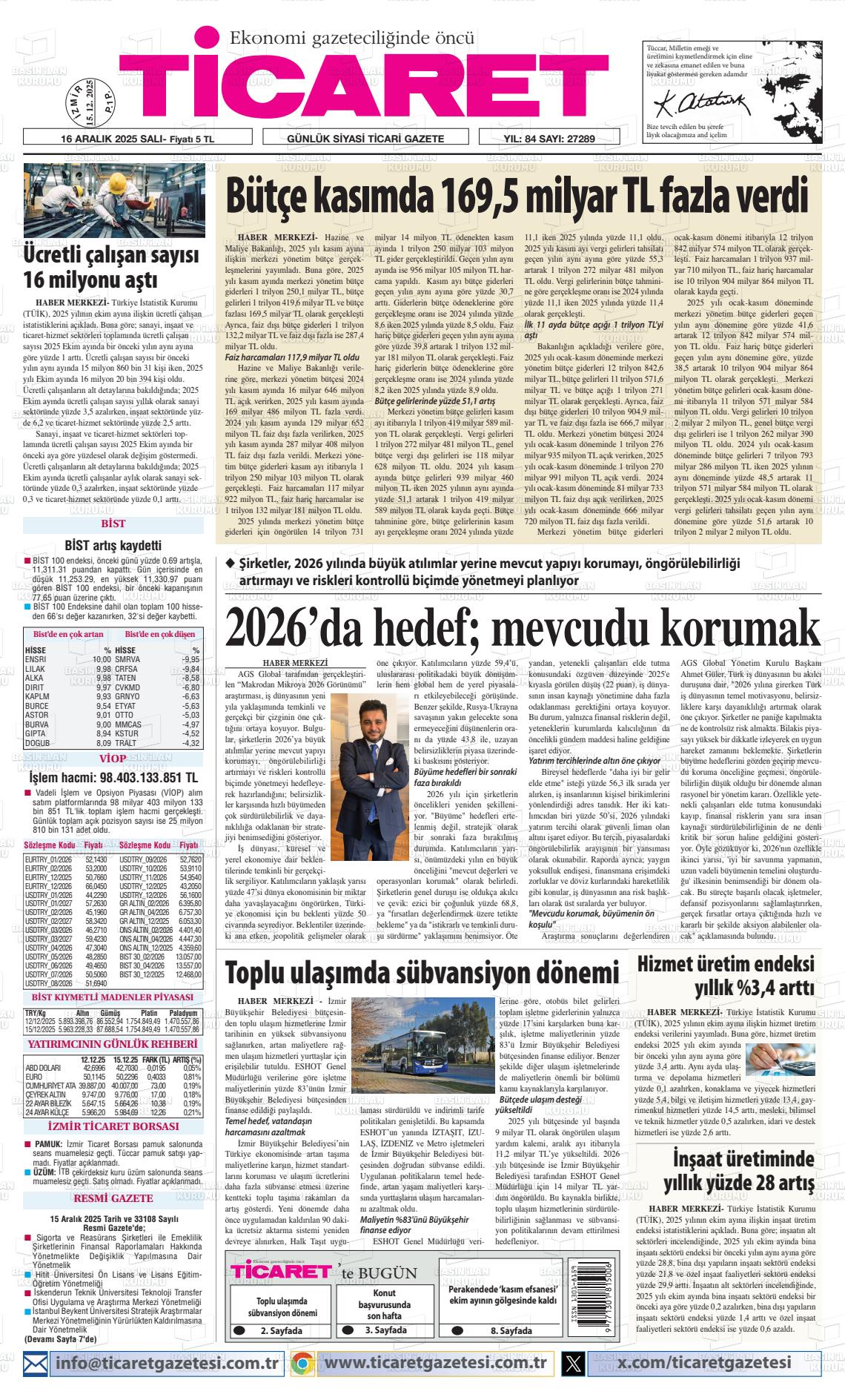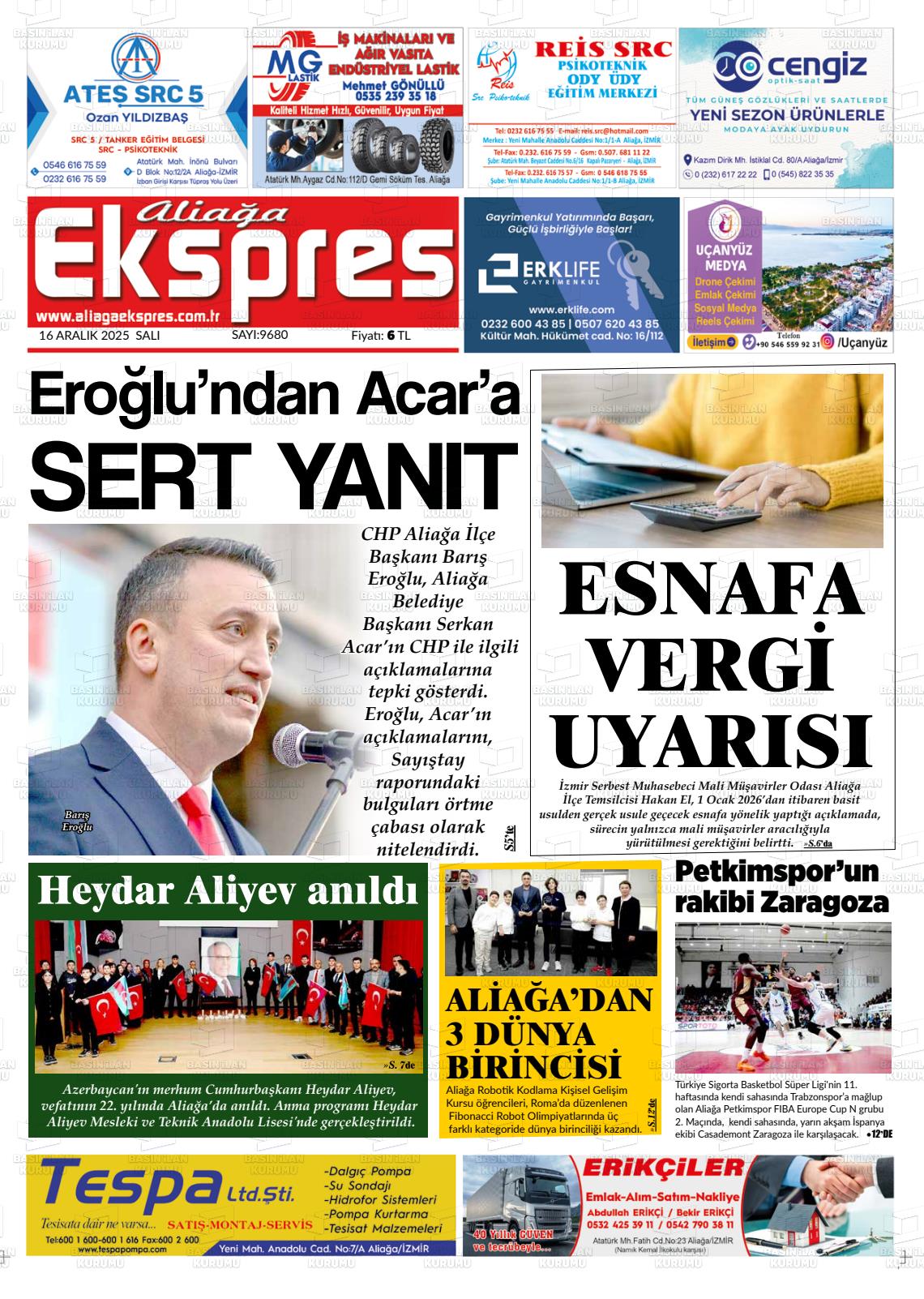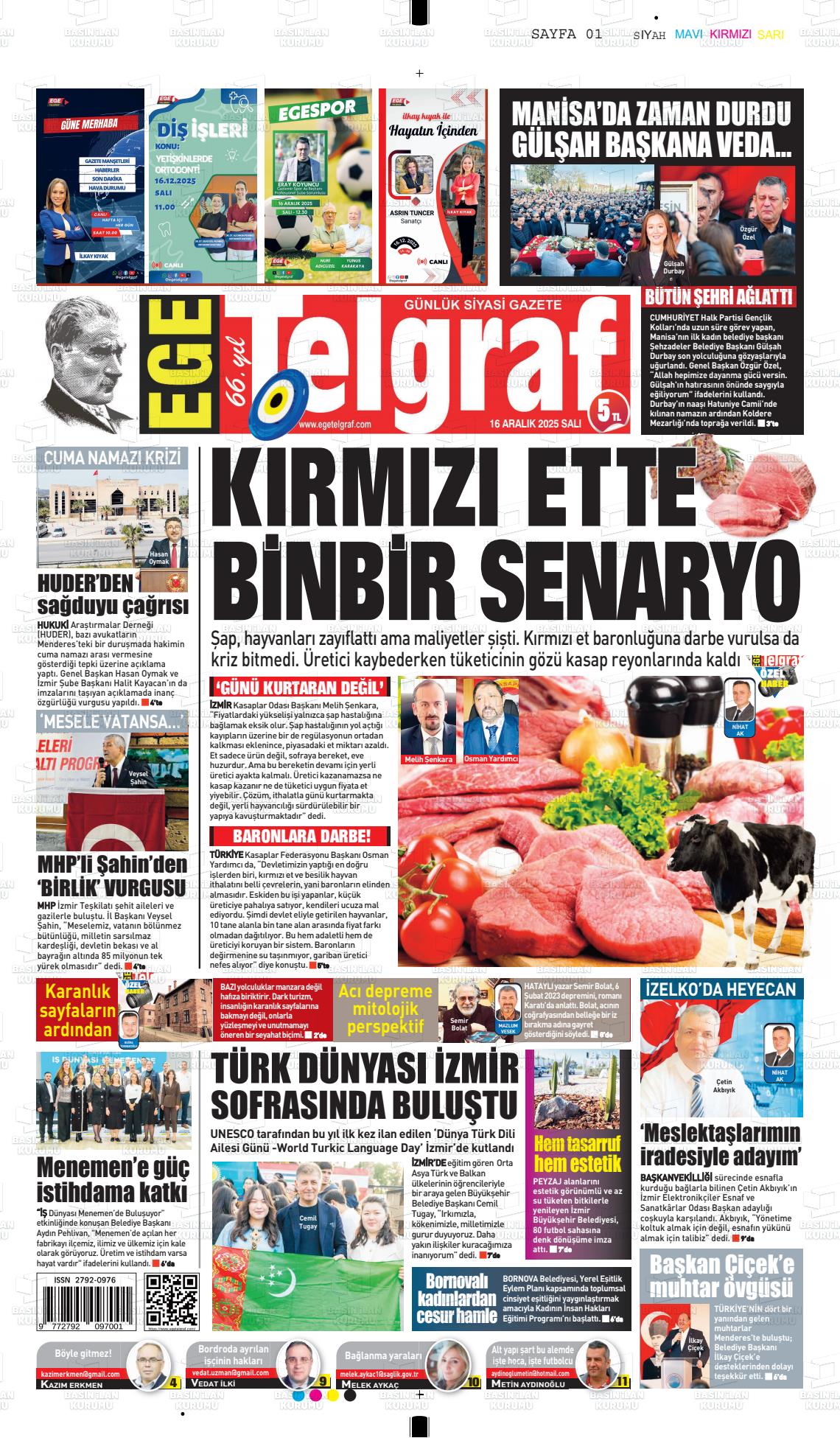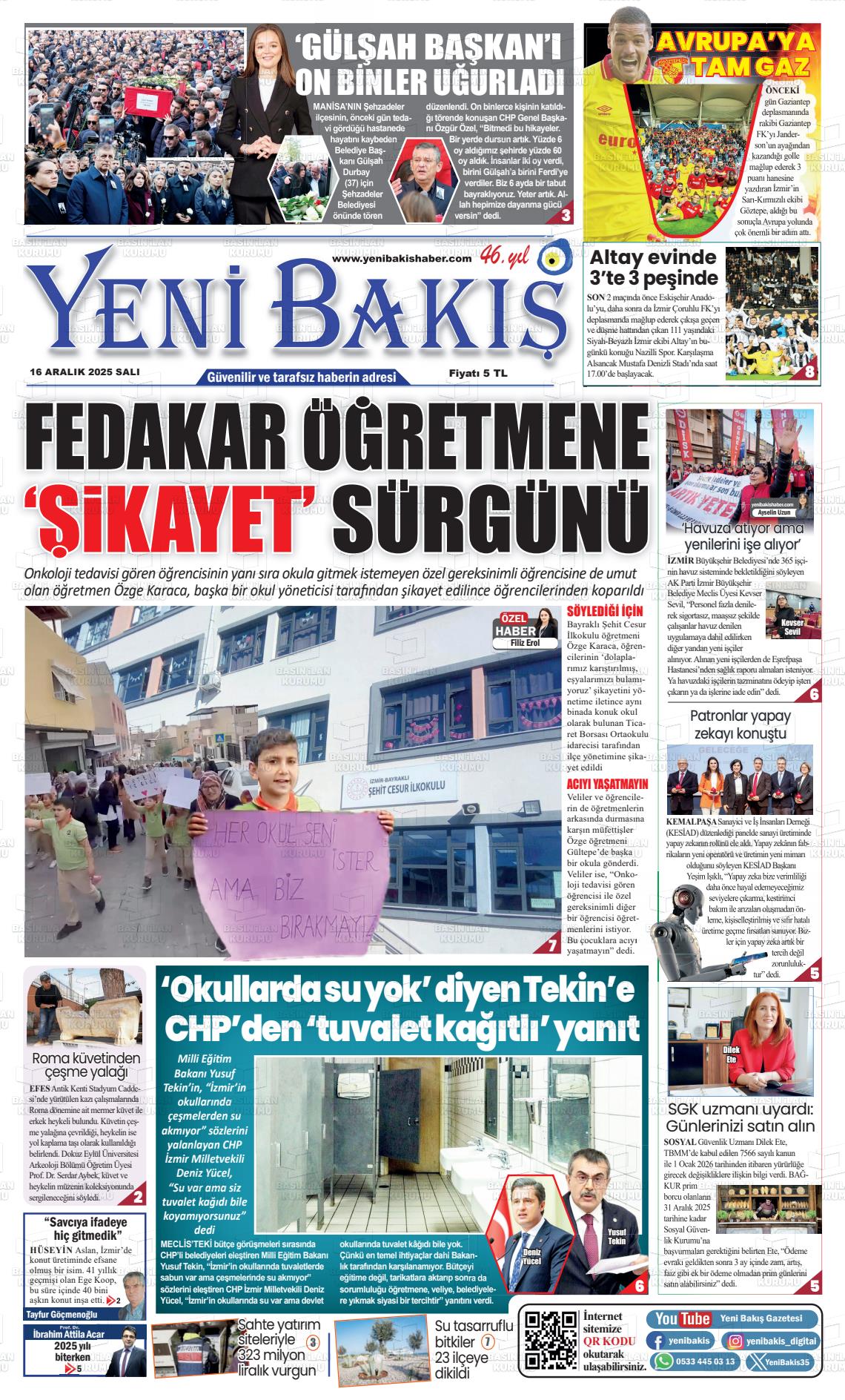 16 Aralık 2025, Salı Günü Manşeti