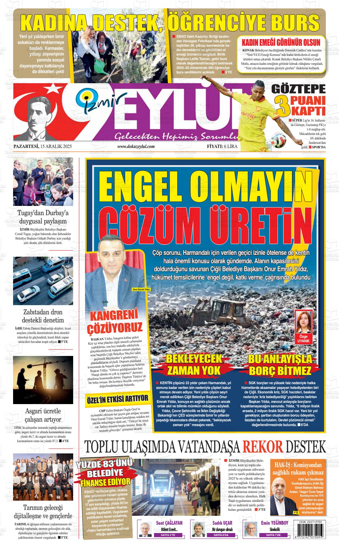 15 Aralık 2025, Pazartesi Günü Manşeti
