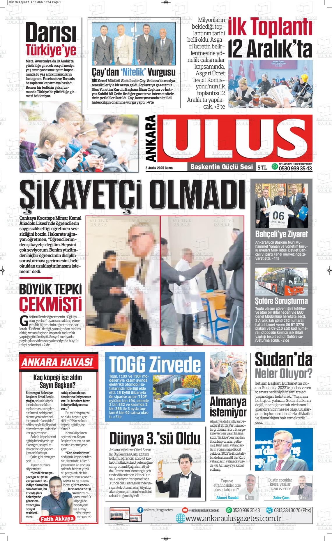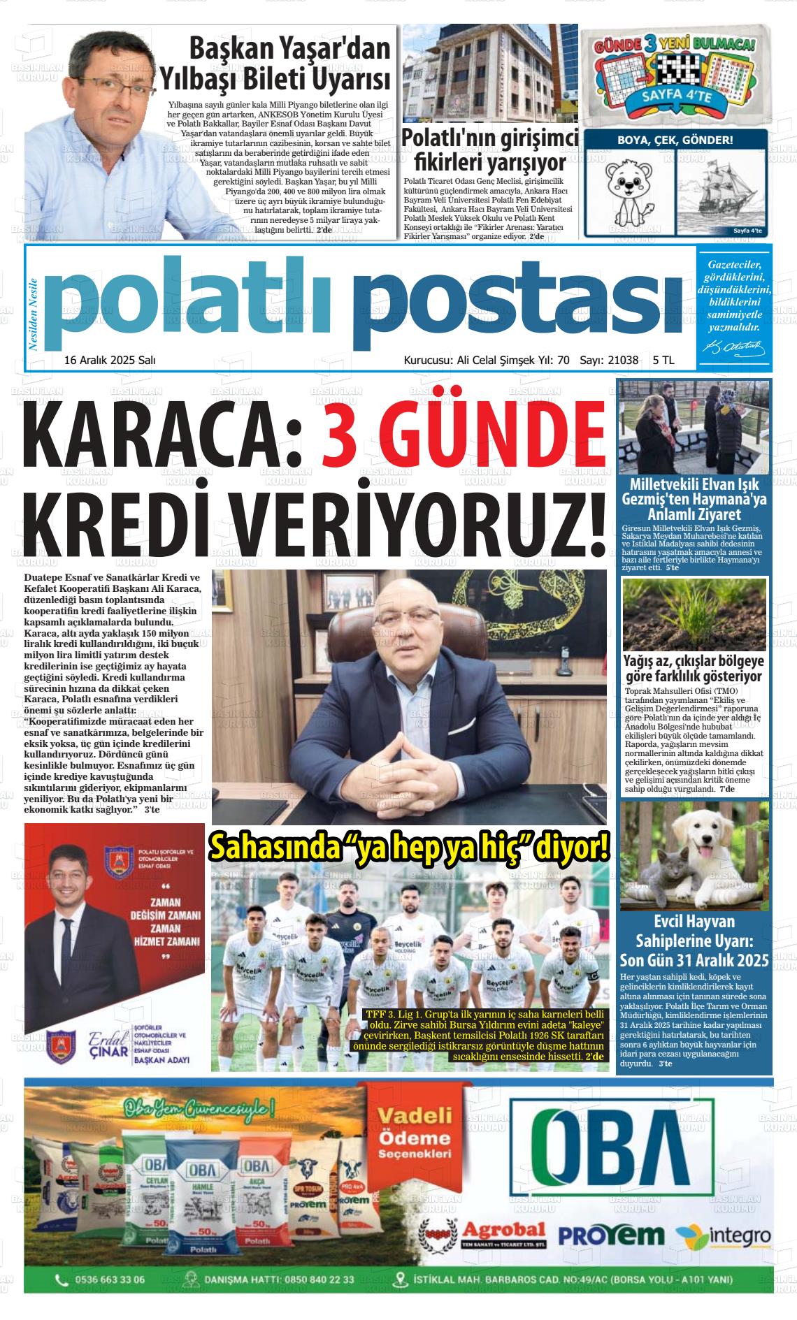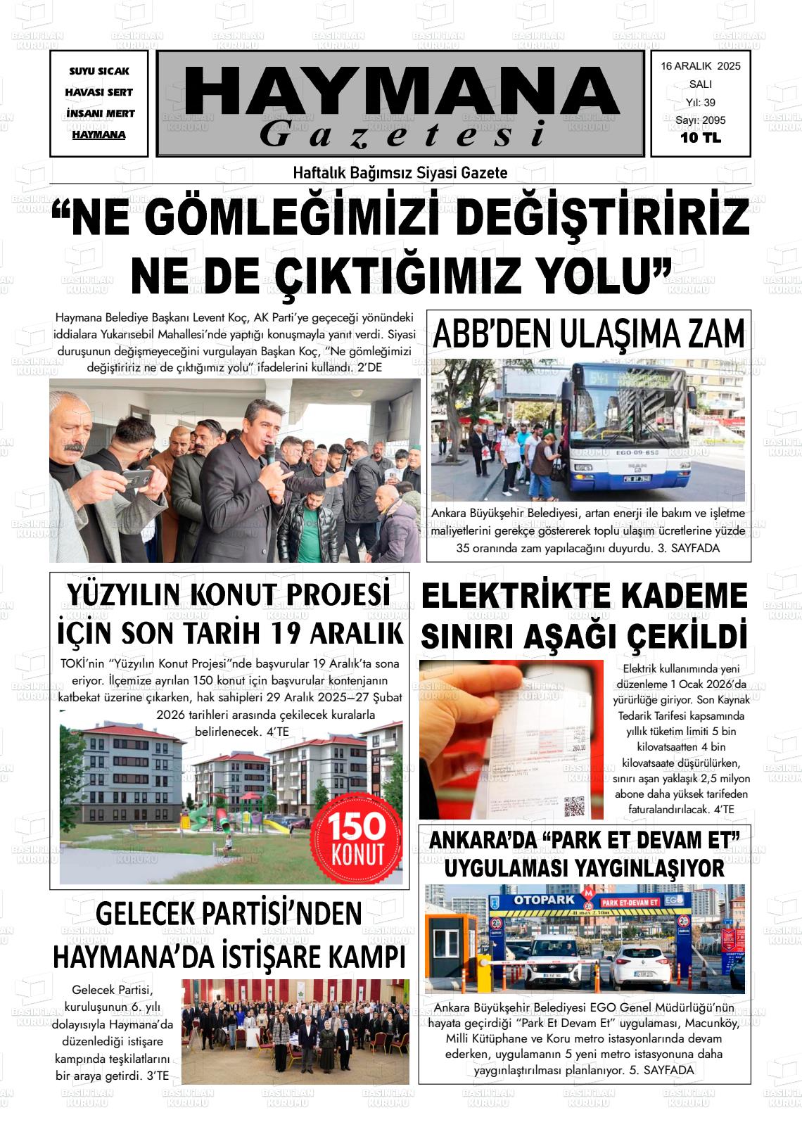 Ankara Yerel Gazeteleri 16 Aralık 2025, Salı Günü Manşeti