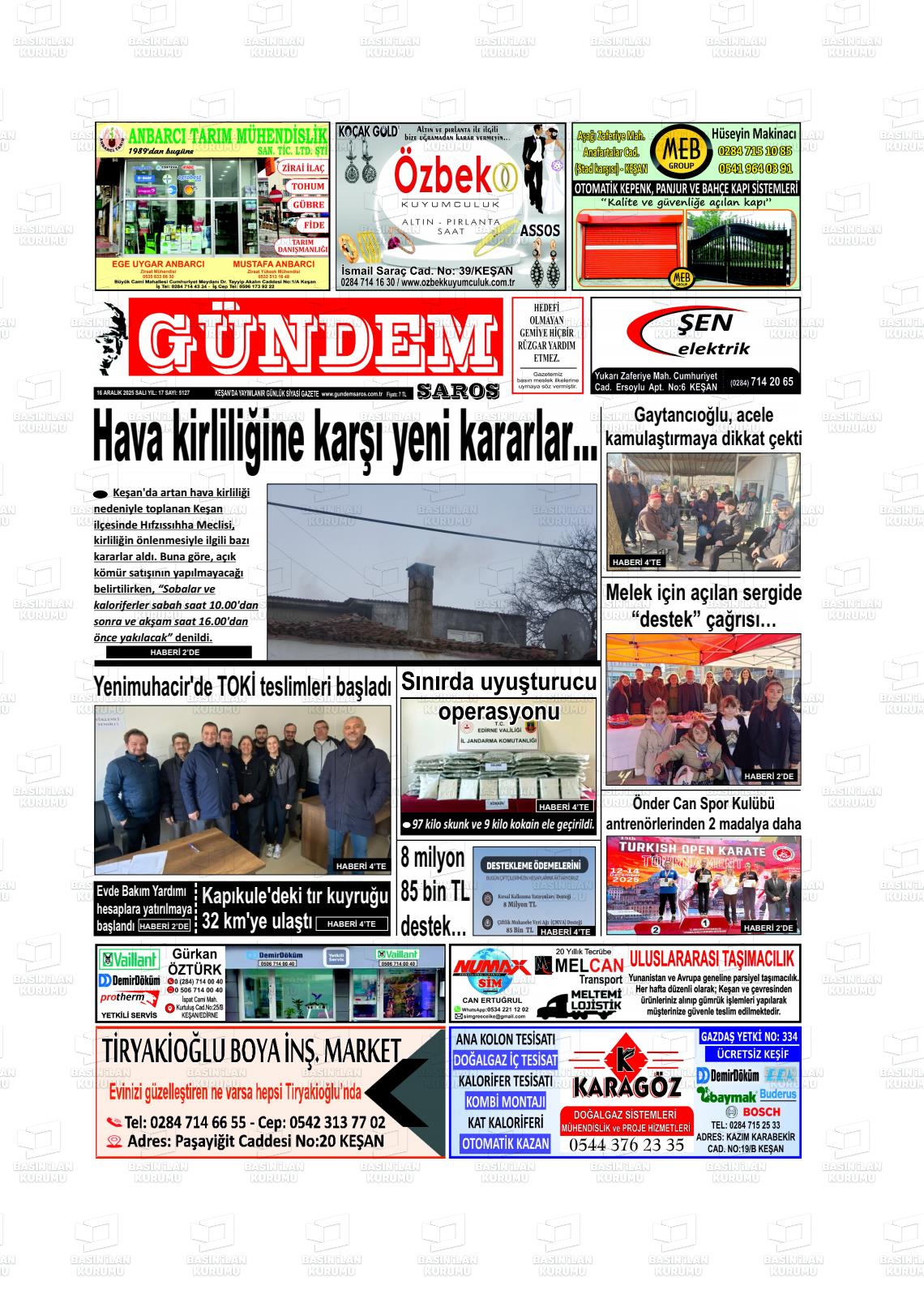 17 Aralık 2025, Çarşamba Günü Manşeti