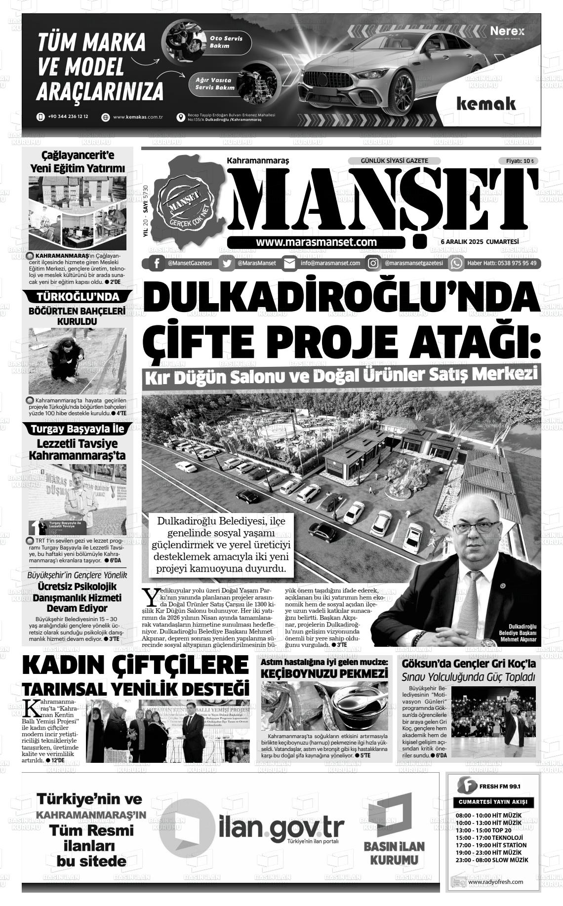 06 Aralık 2025, Cumartesi Günü Manşeti