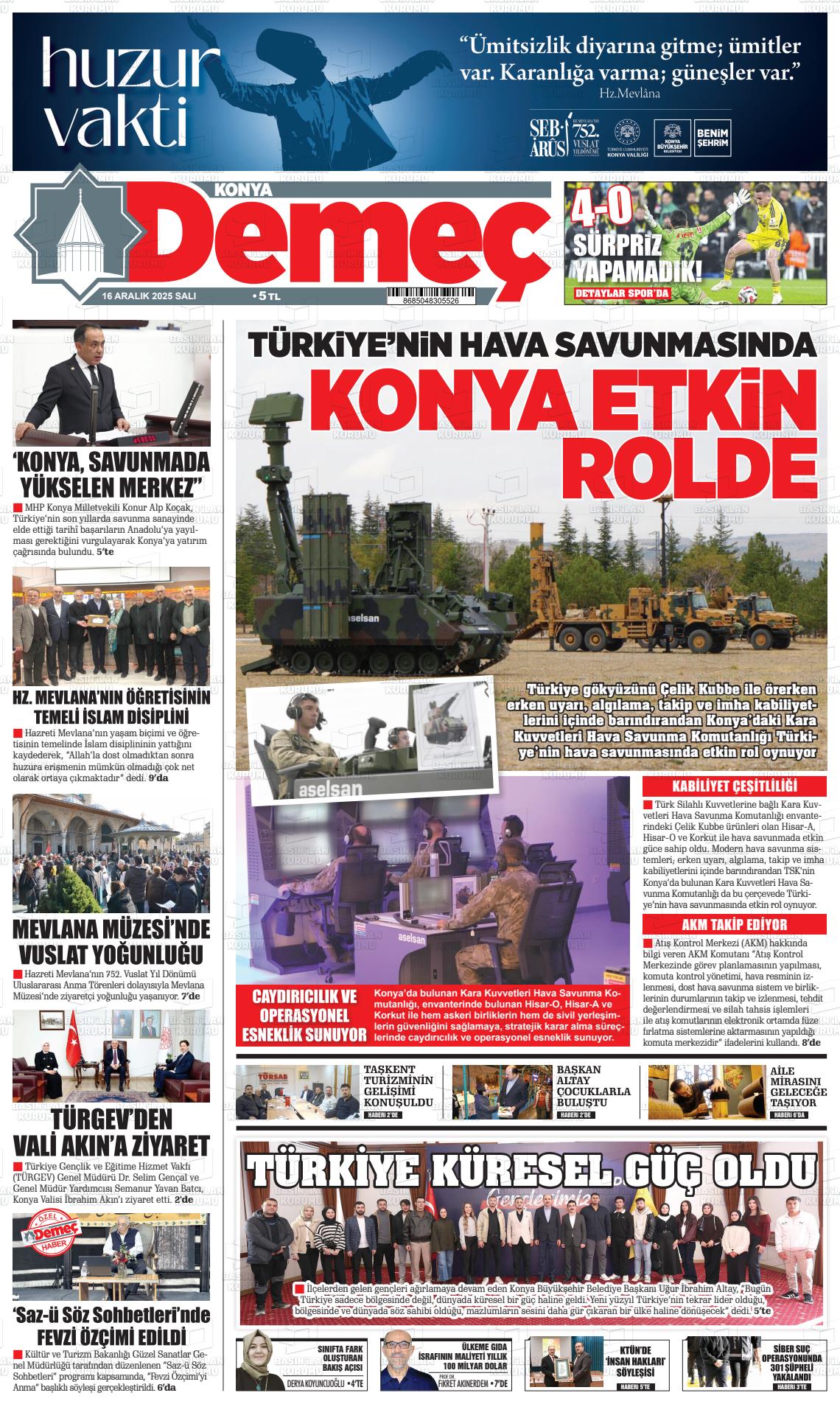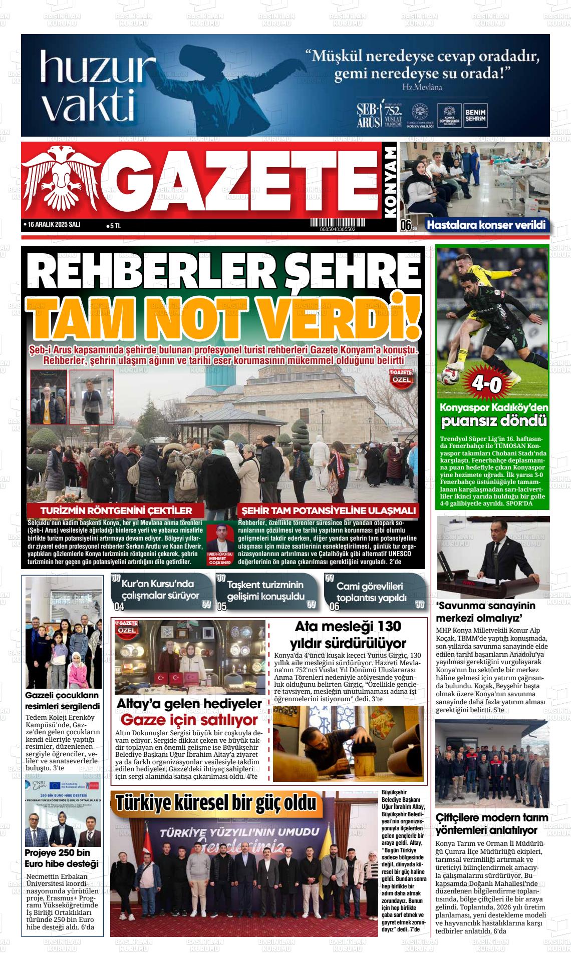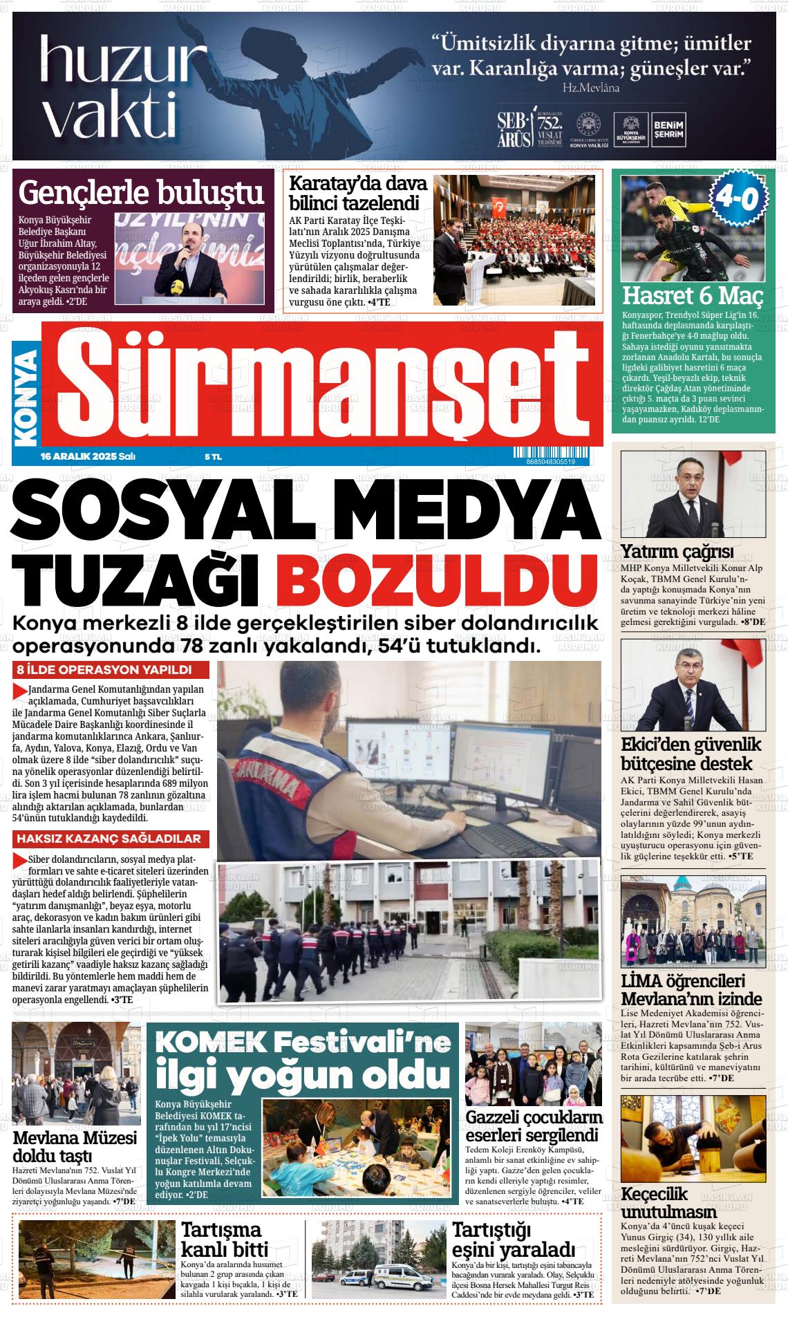 16 Aralık 2025, Salı Günü Manşeti
