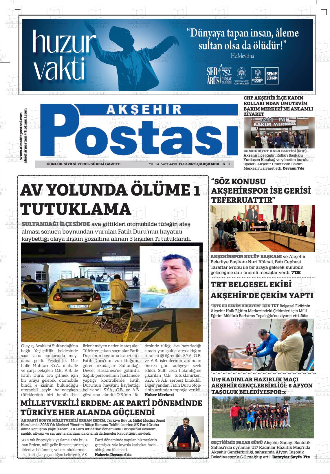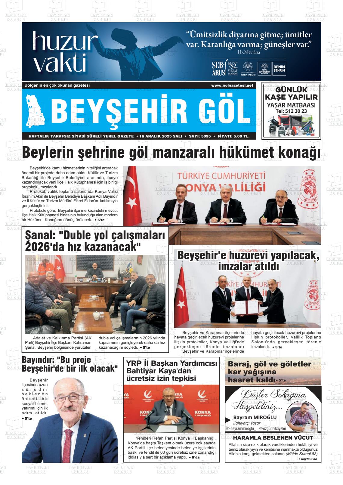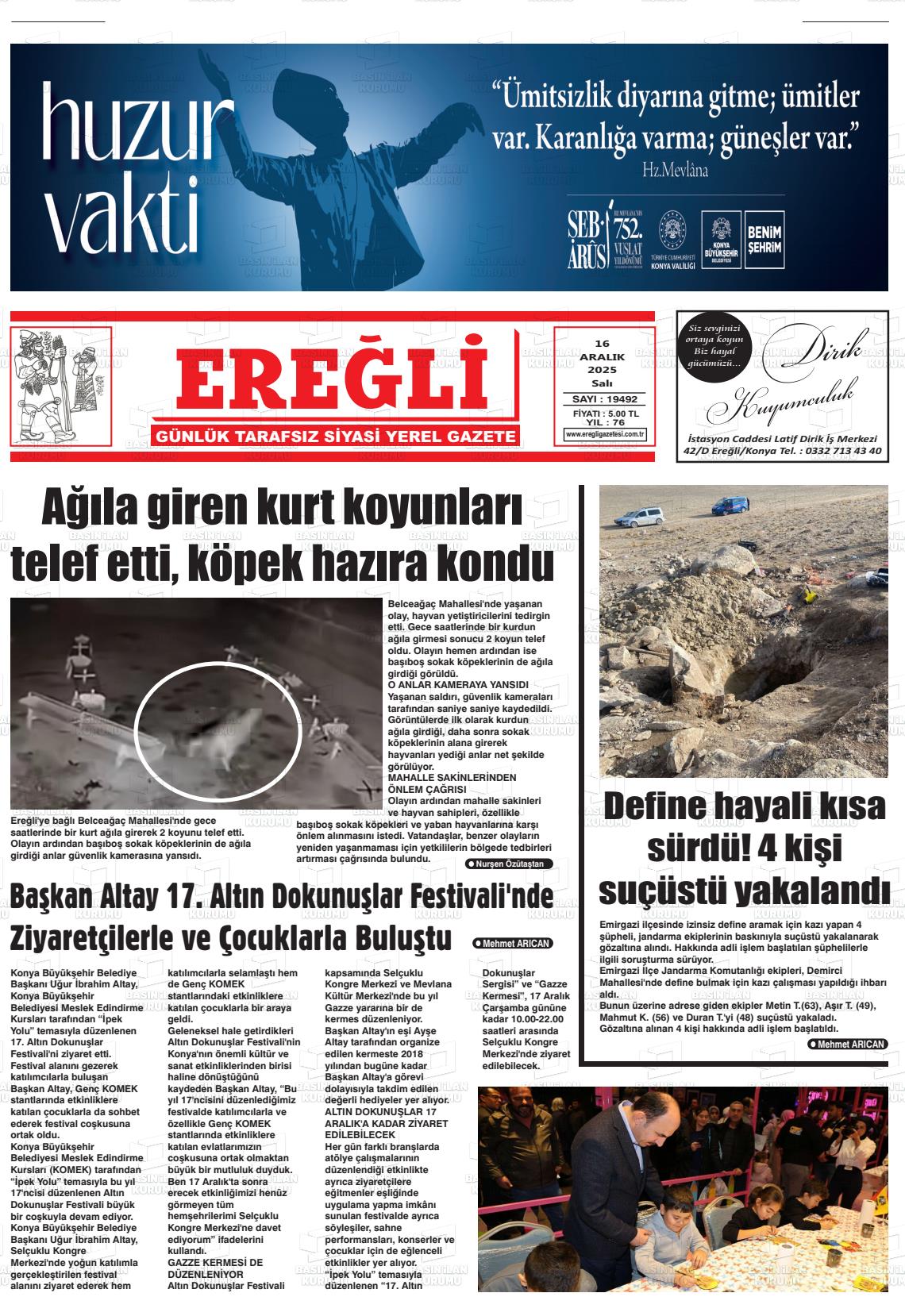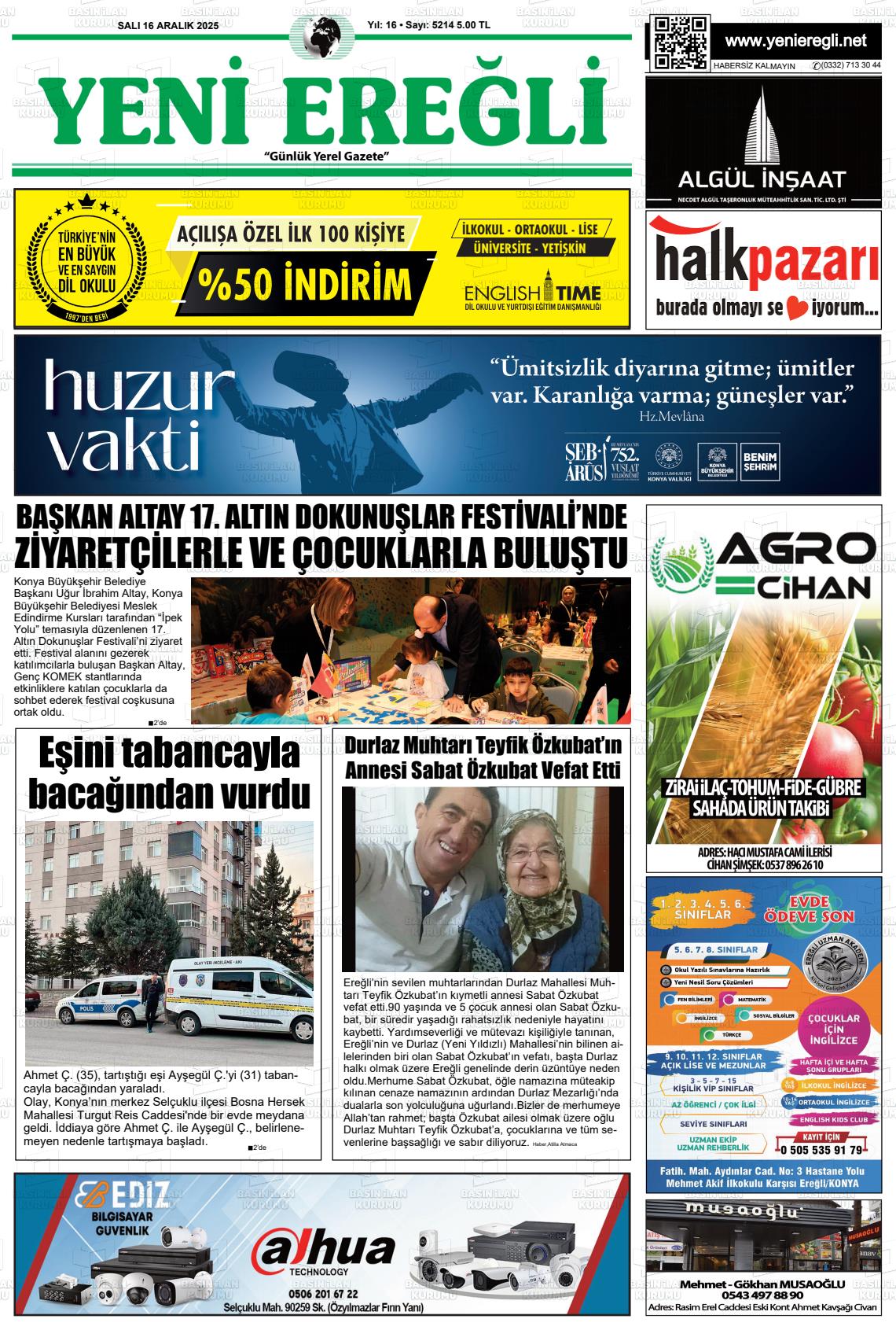 16 Aralık 2025, Salı Günü Manşeti