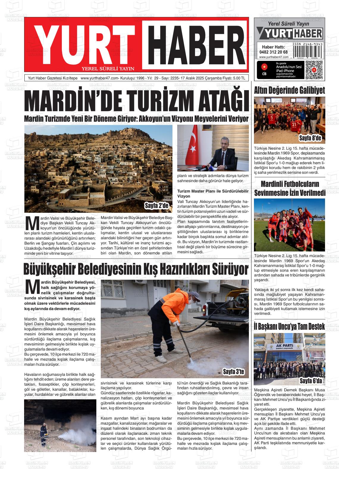17 Aralık 2025, Çarşamba Günü Manşeti