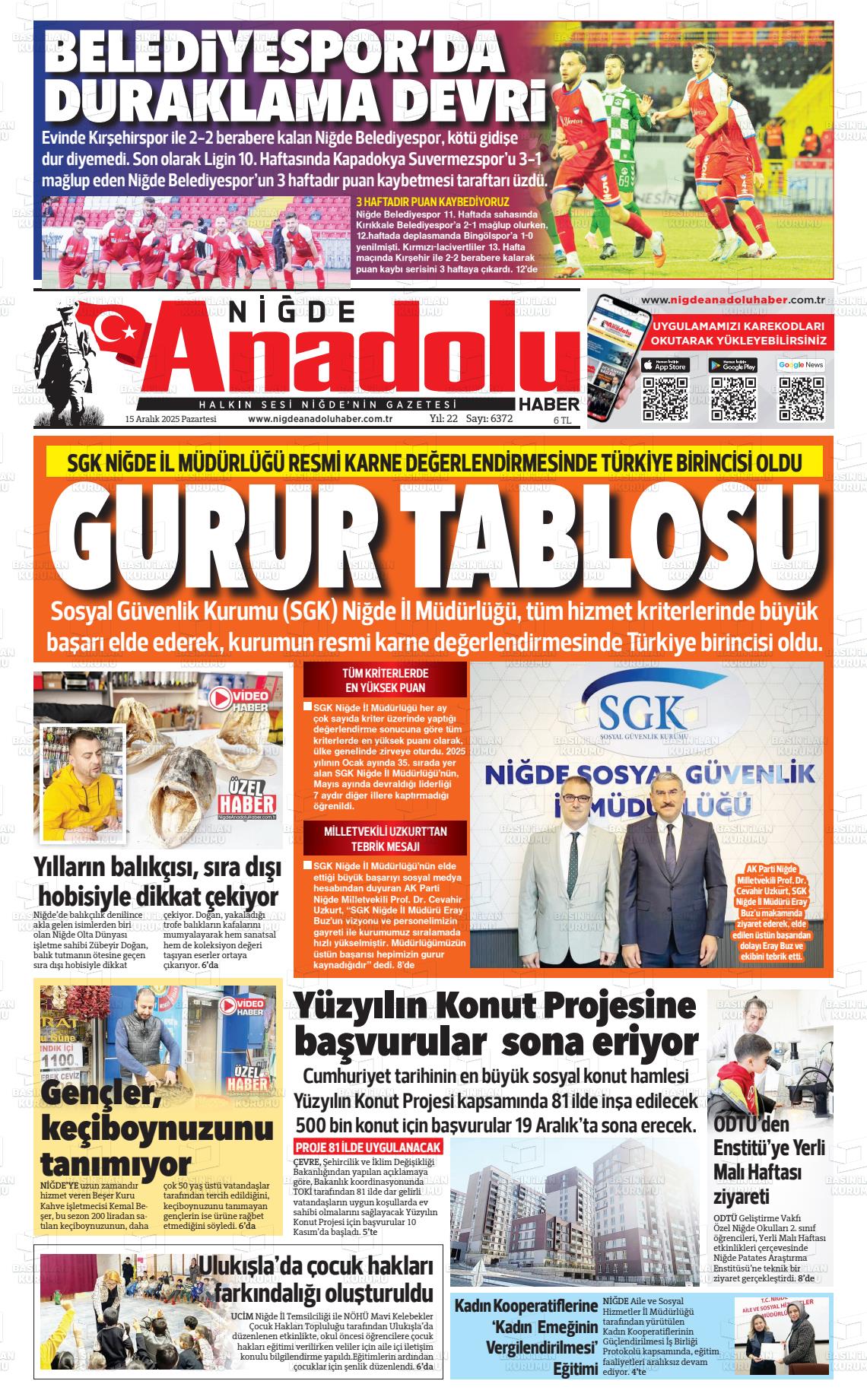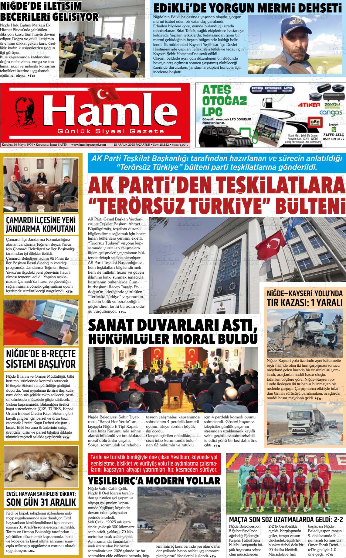 15 Aralık 2025, Pazartesi Günü Manşeti