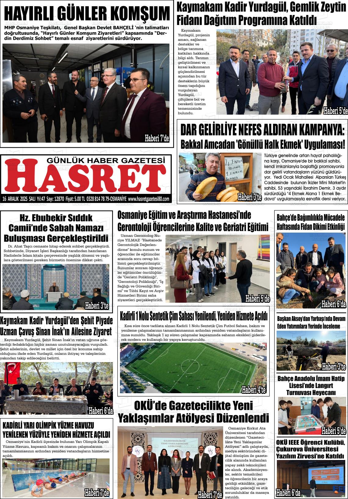 17 Aralık 2025, Çarşamba Günü Manşeti