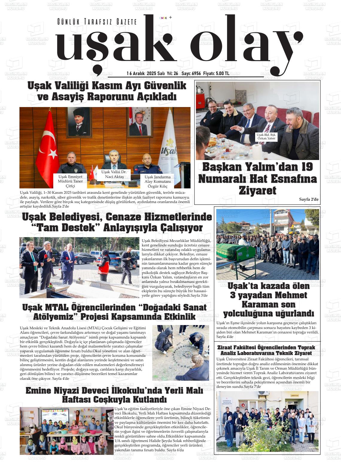 16 Aralık 2025, Salı Günü Manşeti
