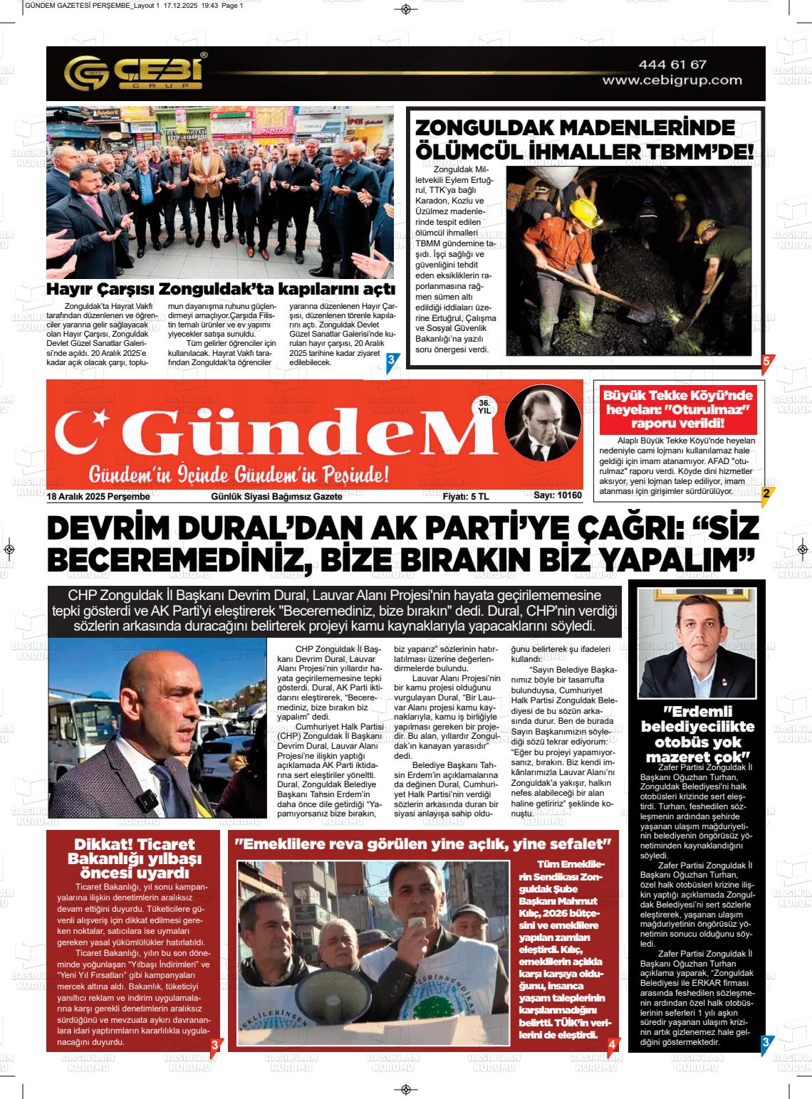 17 Aralık 2025, Çarşamba Günü Manşeti