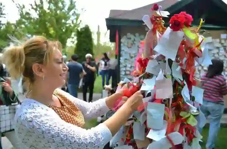 Kimisi dileğini bir küçük kese içine koyarak ağacın dibine gömer.
