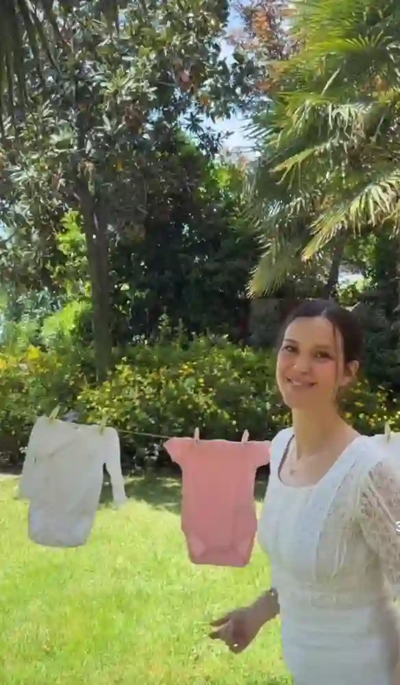 İlk olarak takipçilerine “Sizce kız mı, erkek mi?” sorusunu yönelten oyuncu, ardından bir askıya pembe bebek elbisesi asarak bebeğinin cinsiyetini duyurdu: “Bir kız bebek bekliyoruz.”
