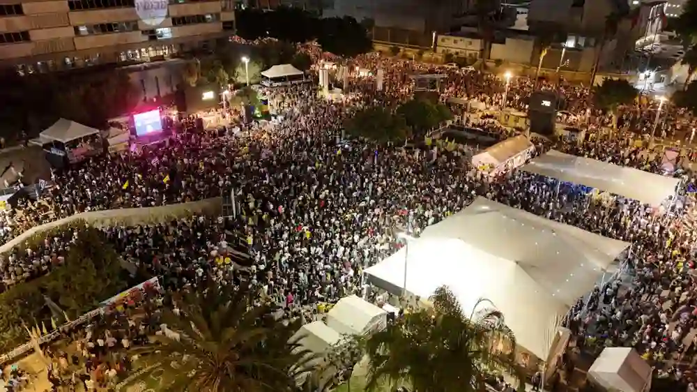 Tüm protestocuların dilinde, yalnız İsrailli rehineler değil, Gazzeliler de vardı.