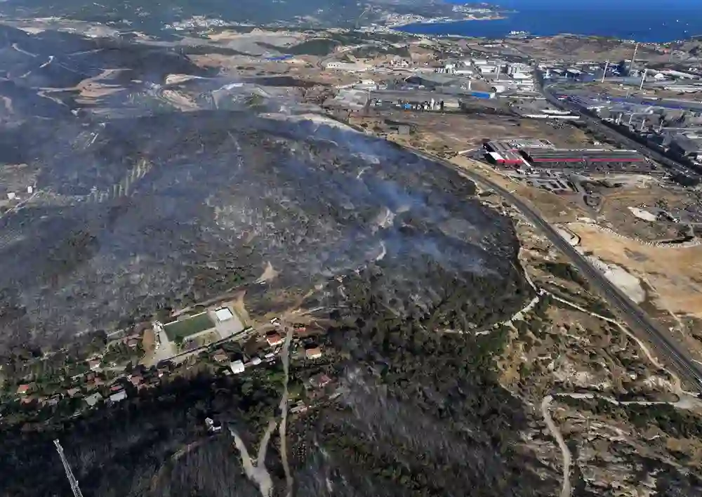 Alevlerin söndürülmesinin ardından Aliağa’dan gelen görüntüler, yangının büyüklüğünü gözler önüne serdi.