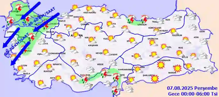 Rüzgarın, Marmara ile Kuzey Ege kıyılarında kuzey ve kuzeydoğu yönlerden kuvvetli ve kısa süreli fırtına (40-70 km/saat) şeklinde esmesi beklendiğinden yaşanabilecek olumsuzluklara karşı dikkatli ve tedbirli olunması gerekmektedir.
