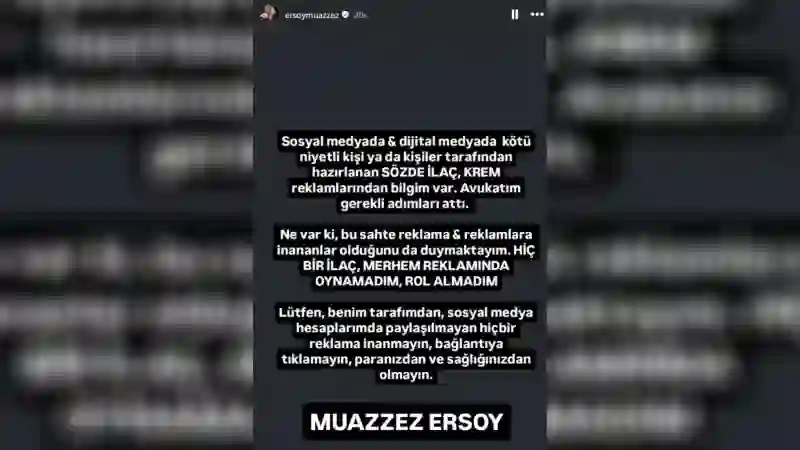 Instagram hesabı üzerinden yazılı bir açıklama yayınlayan Muazzez Ersoy, “” ifadelerini kullandı.