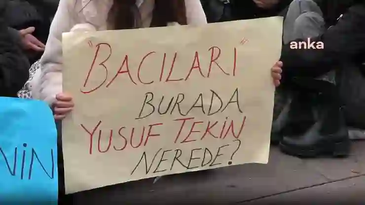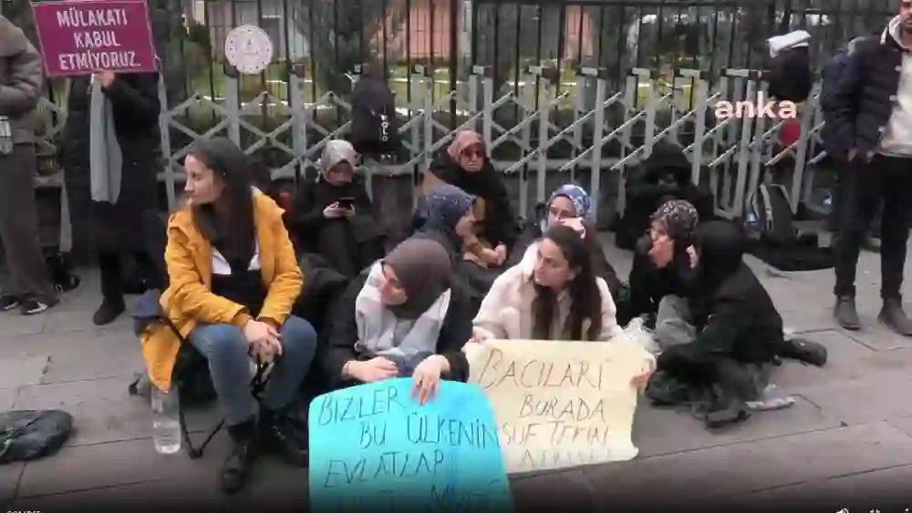 “Algı değil hakikat, adaletsiz mülakat” sloganları atan öğretmen adayları, ellerinde, “Mülakat gibi mülakat dediler, öğretmen kıyımı yaptılar”, “Mülakatı kabul etmiyoruz” “Bacıları burada, Yusuf Tekin nerede?” yazılı dövizler taşıdı.