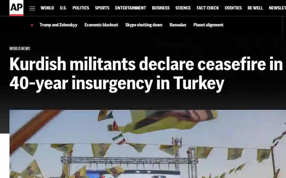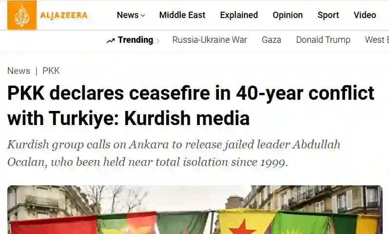 Katar merkezli El Cezire, “PKK, Türkiye ile 40 yıldır süren çatışmalarda ateşkes ilan etti” başlığını kullandı.