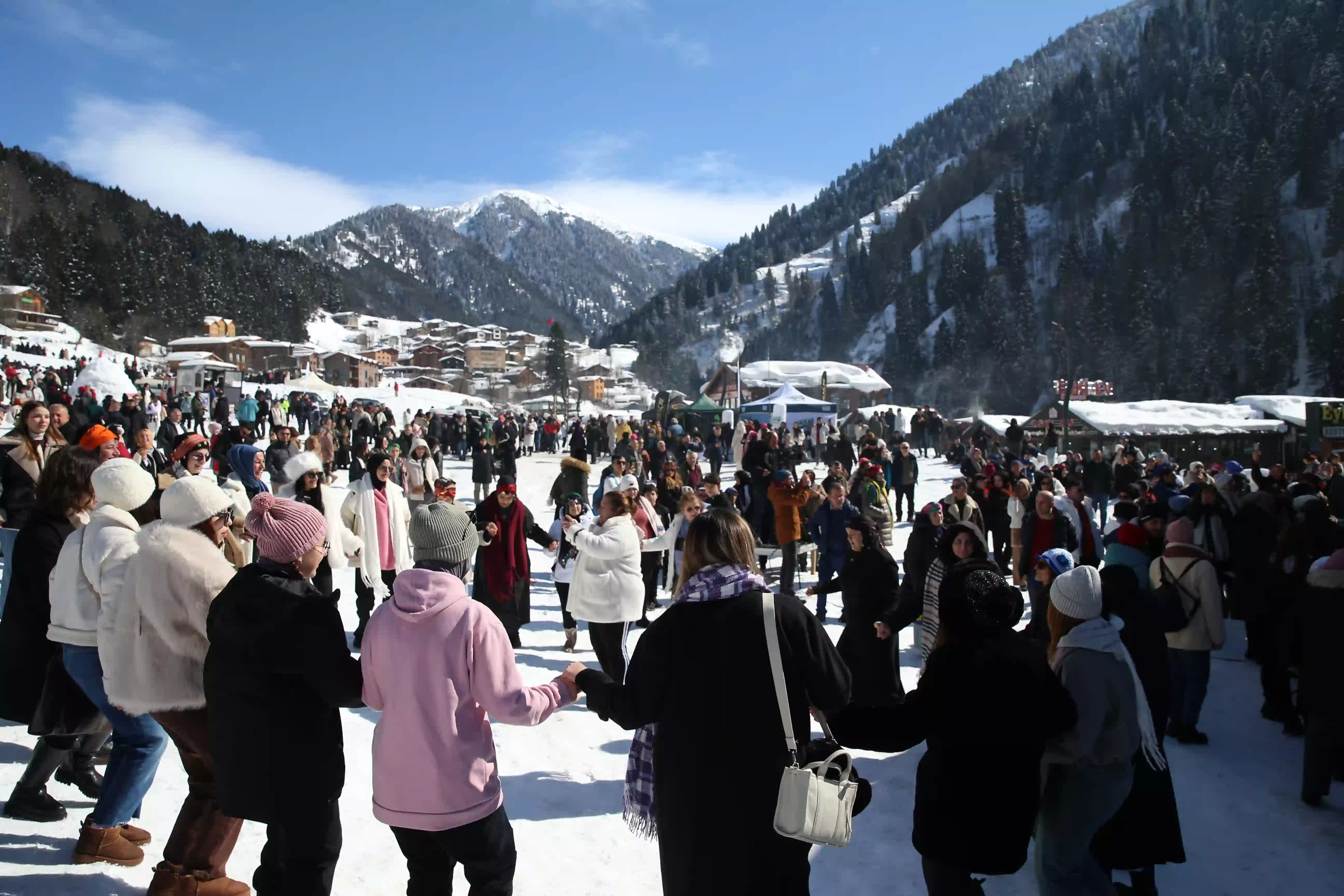 Katılımcılardan bazıları kar üstünde horon oynadı, bazıları ise naylonla kaymaya çalıştı.