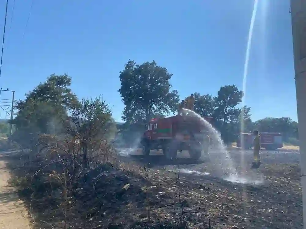 Pazaryeri ilçesine bağlı Karaköy ile Bilecik merkeze bağlı Kurtköy arasındaki tarım arazisinde henüz bilinmeyen nedenle yangın çıktı.