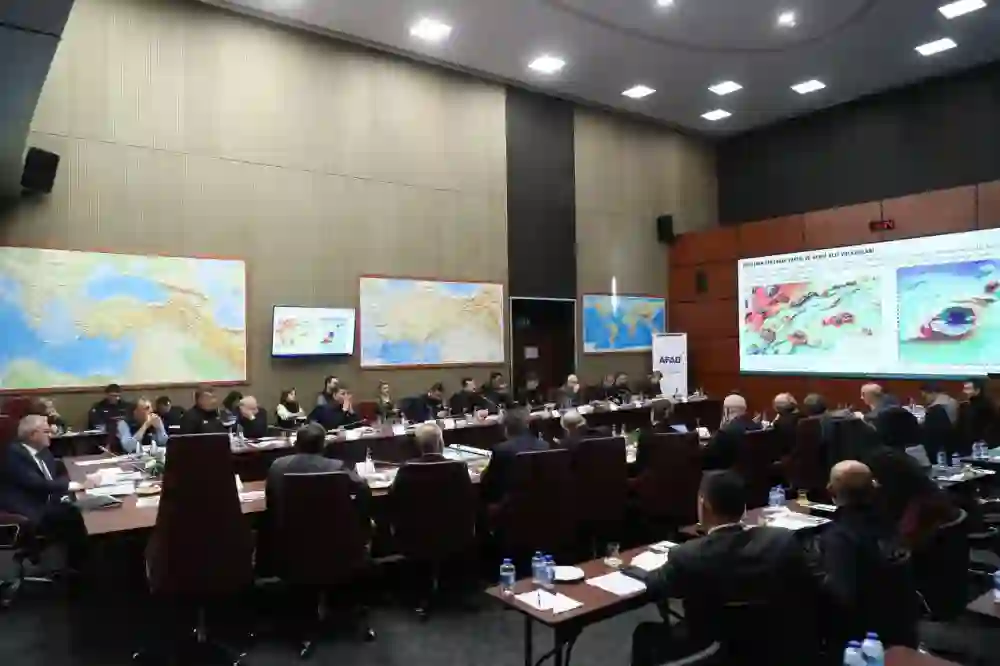 Değerlendirme toplantısında; Ege Denizi Santorini Adası ve civarında 28 Ocak 2025 tarihinden itibaren görülen sismik aktivite sonucu meydana gelebilecek muhtemel daha büyük bir deprem, tsunami veya bir volkanik patlamanın Türkiye kıyıları için oluşturabileceği tehlikeler, alınan önlem ve hazırlıklar AFAD, MTA, Meteoroloji Genel Müdürlüğü, Kandilli Rasathanesi ve Deprem Araştırma Enstitüsü, uzman bilim insanları ve araştırmacılarla değerlendirildi.