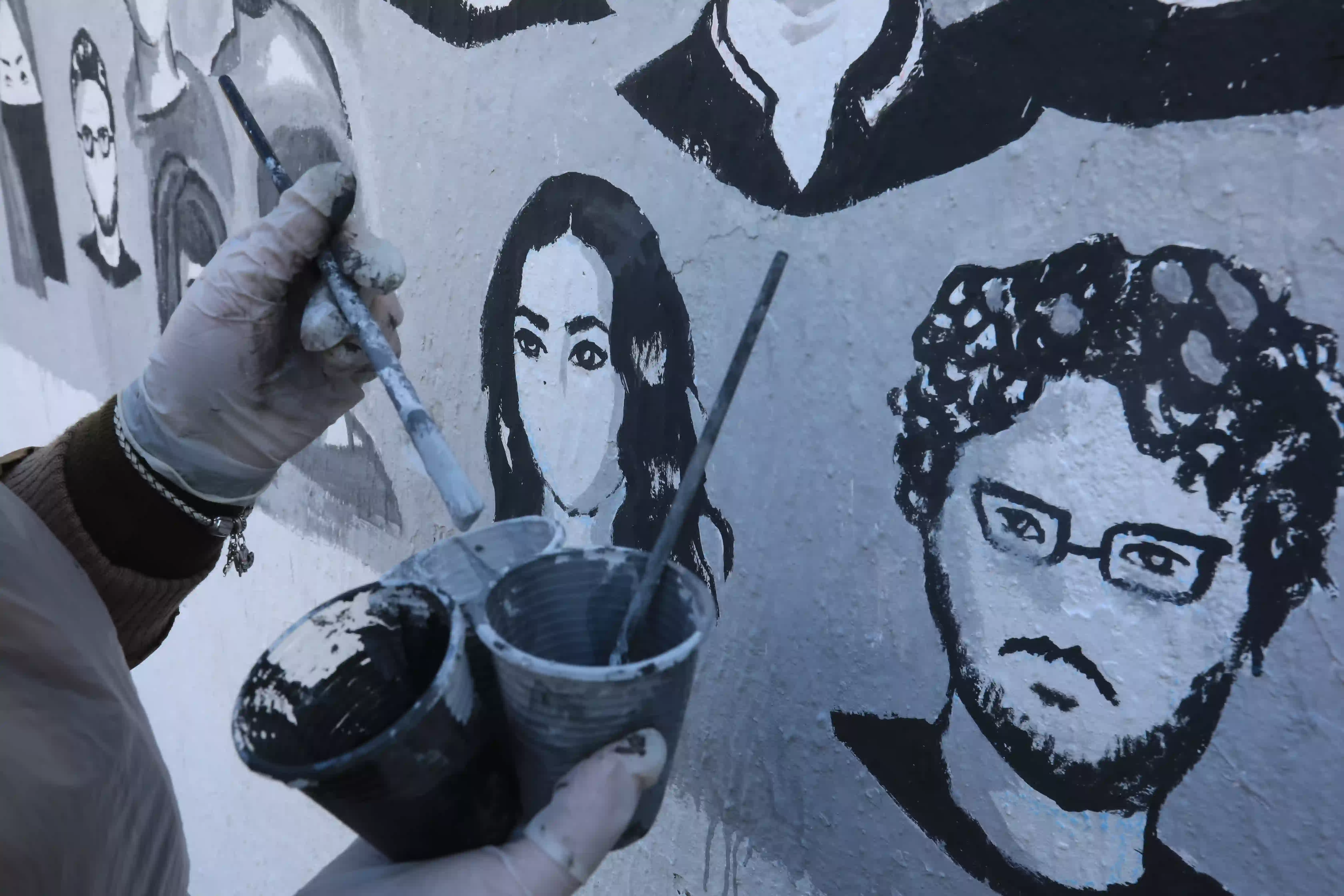 Beşar Esad yönetimi hapishanelerinde akıbeti belli olmayan tutsakların portreleri, yakınları ve sanatçılar tarafından duvarlara resmediliyor.