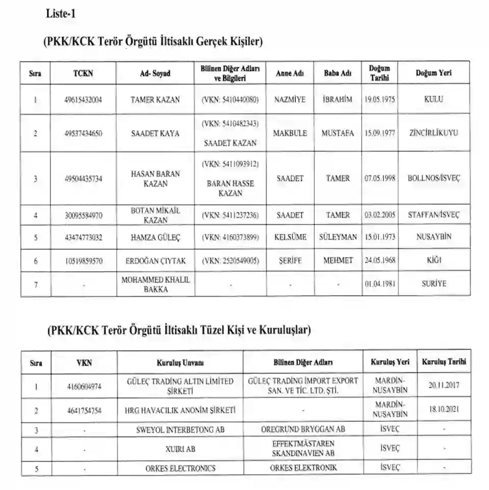 Karar göre, Terörizmin Finansmanının Önlenmesi Hakkında Kanunu çerçevesinde “terörün finansmanı” suçunu işleyen PKK/KCK bağlantılı yedi gerçek kişi ile beş tüzel kişinin, DAEŞ ve EL KAİDE bağlantılı 22 gerçek kişinin, FETÖ/PDY bağlantılı bir gerçek kişi ile dokuz tüzel kişinin Türkiye’deki mal varlıkları donduruldu.