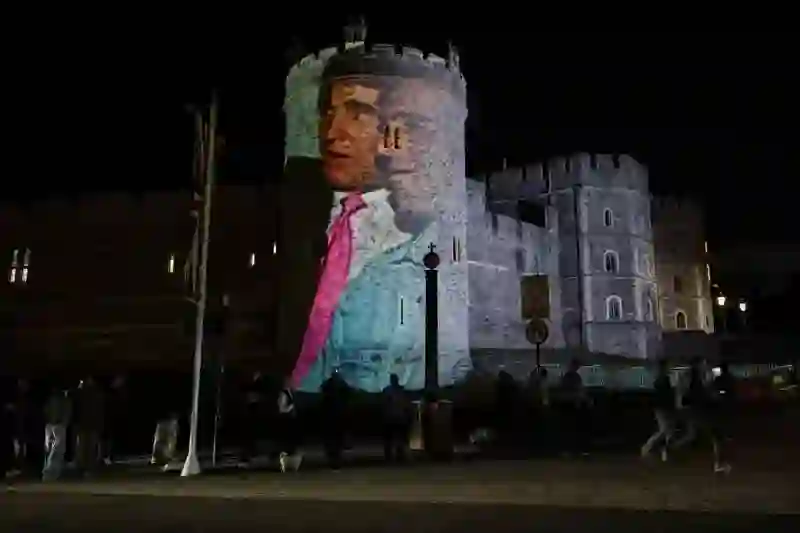 Seks suçu hükümlüsü Jeffrey Epstein’in Donald Trump ile birlikte çekilen görüntüleri Windsor Kalesi’nin duvarına yansıtıldı.