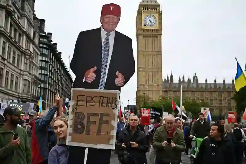 17 Eylül 2025’te Londra’daki Parlamento Meydanı’nda düzenlenen Trump karşıtı gösteri