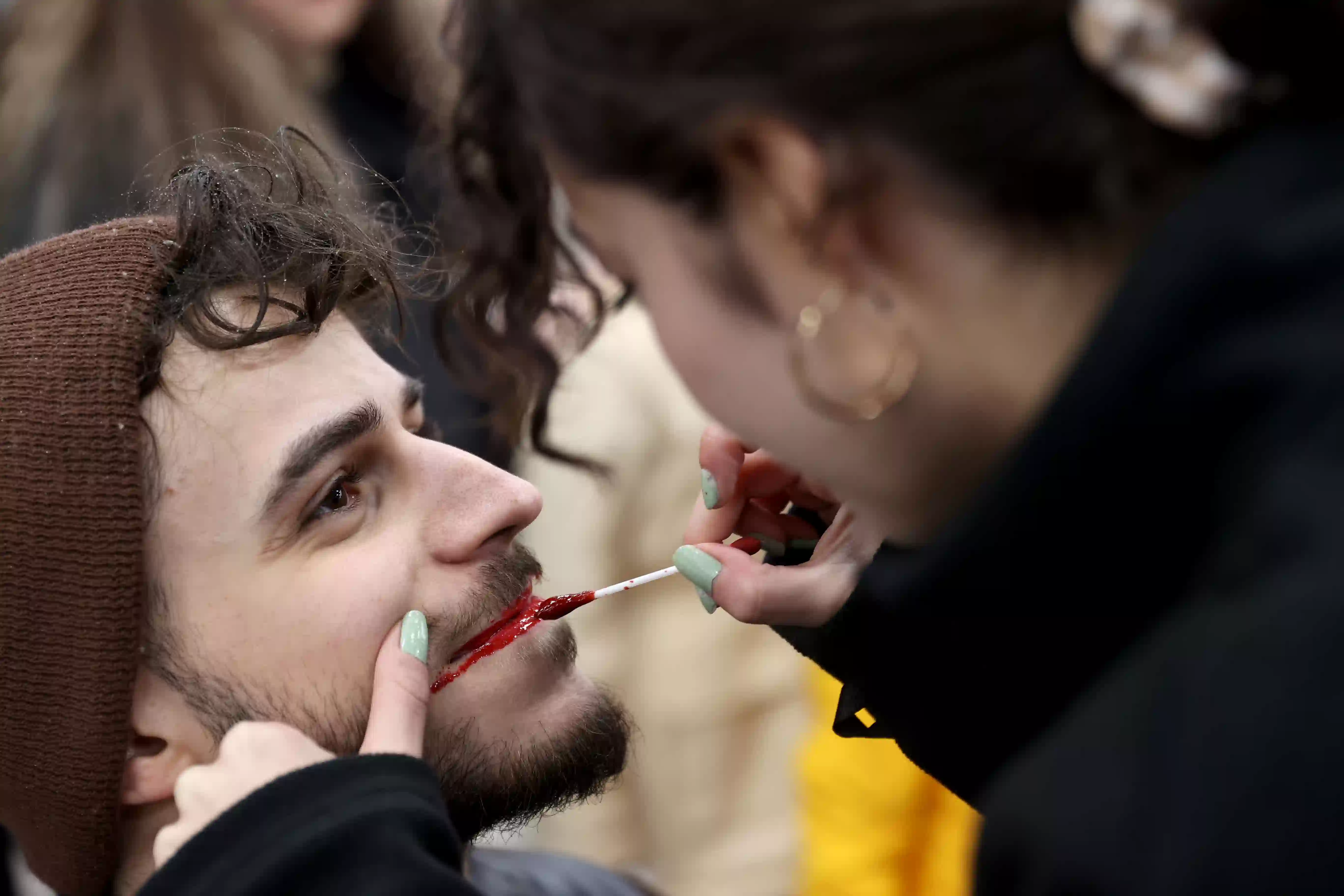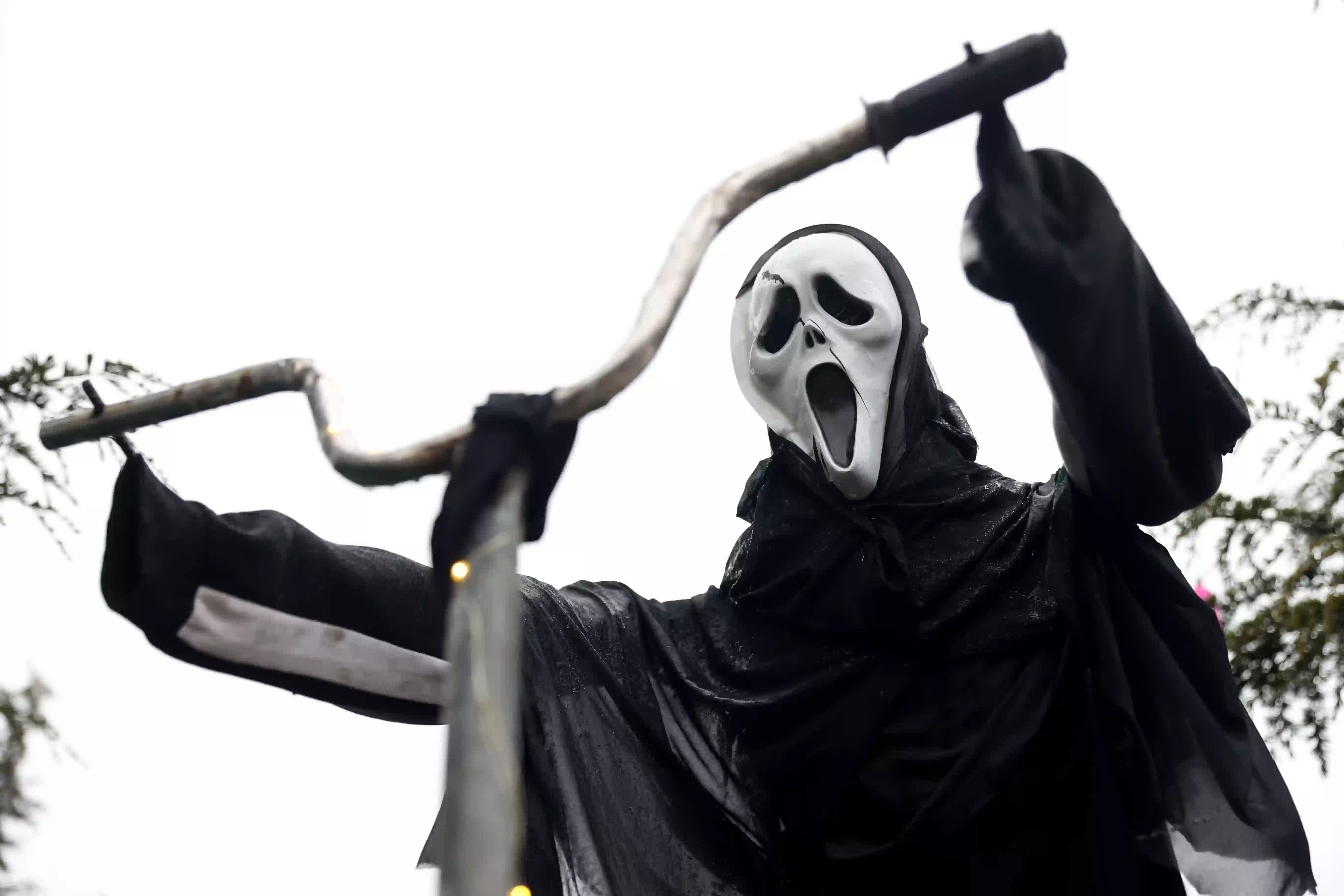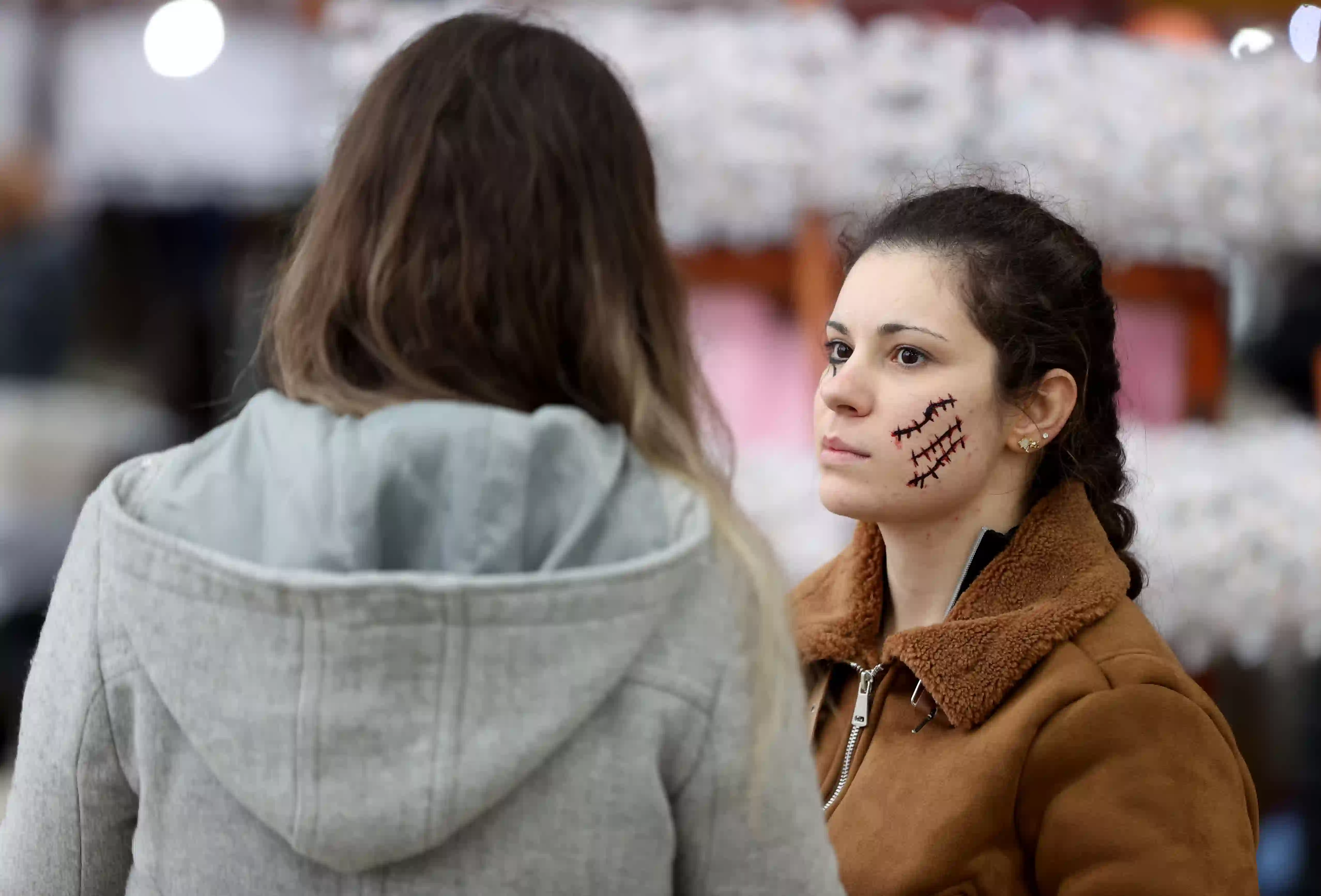 Etkinlik alanında bulunan korkutucu figürlerle fotoğraf çektiren vatandaşlar birbirlerini korkutmak için havanın kararmasını bekliyor.