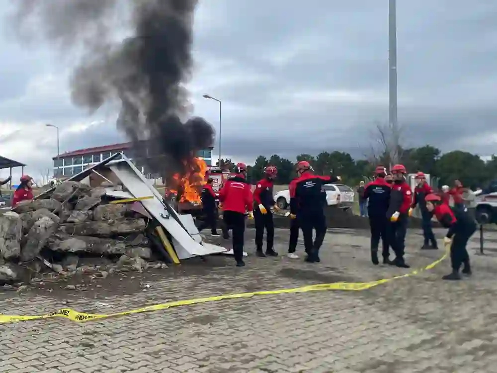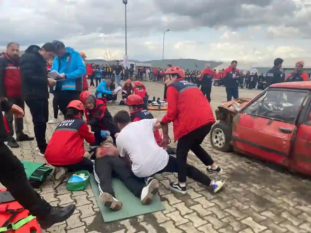 Hava saldırısı senaryosu ile gerçekleştirilen tatbikatta, çalan sirenle AFAD, UMKE, jandarma, sağlık ve itfaiye birimleri tarafından enkazda kurtarma, araçta kurtarma, yangına müdahale, tıbbi acil yardım ve olay yeri yönetimi aşamalarında uygulamalar yapıldı.